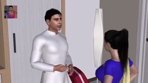 The neighbor returns home and aggressively fucks the young and innocent Bhabhi